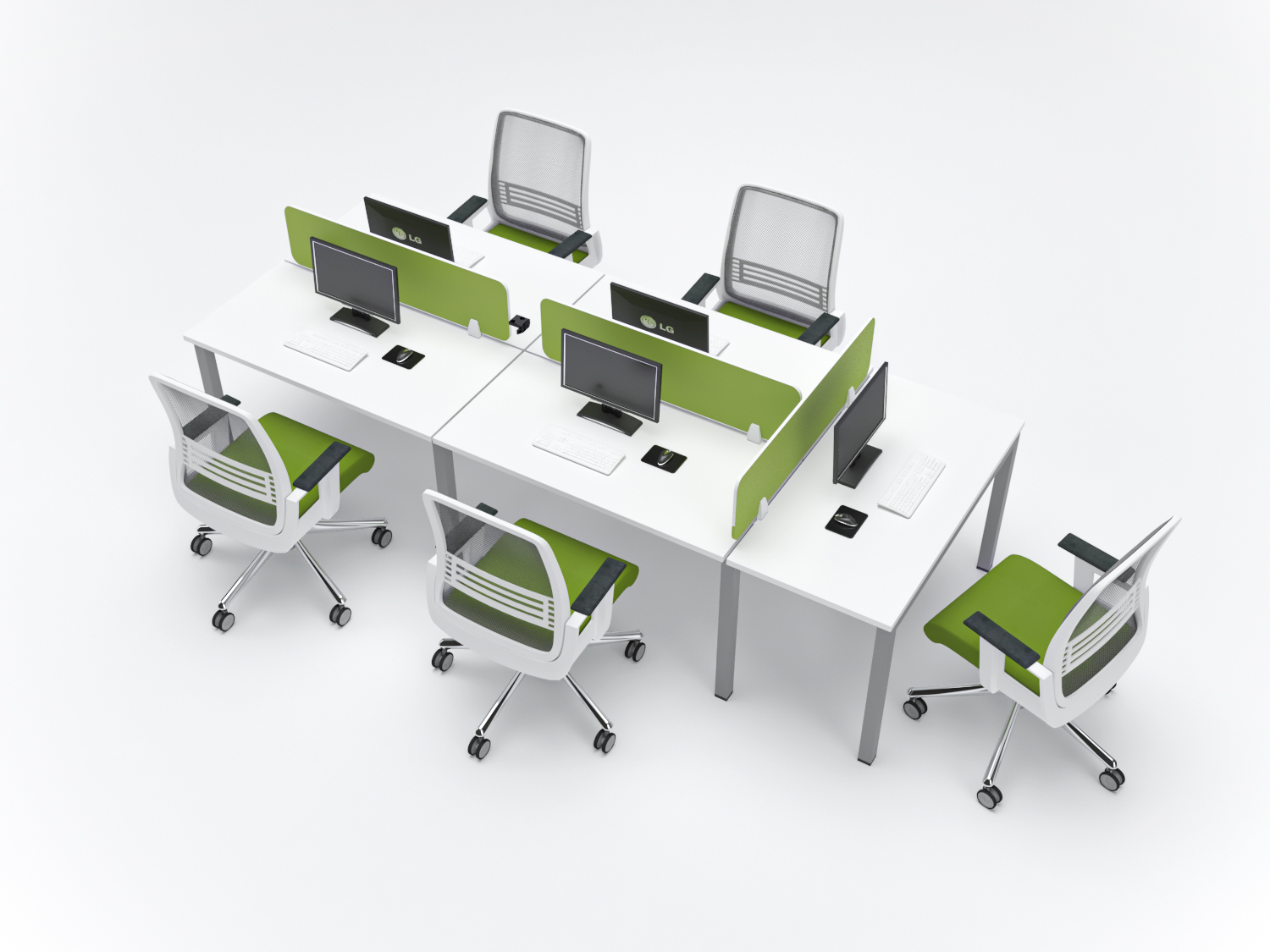 | 5 | SFT.WS.4F | ![]() | W160xD120xH75 cm W200xD120xH75 cm W240xD120xH75 cm W280xD140xH75 cm W320xD140xH75 cm | Four (4) Person Workstation, Desktop, Wooden MDF top 24/17mm thickness in melamine (LPL) finish, Edge rounded with PVC banding, Top with an electrical outlet flipbox. Structure, Metal Tube box 3x6 cm leg structure in Electrostatic paint finish, based on levelling feet. Separator Screen, Wood/fabric, or Glass | |