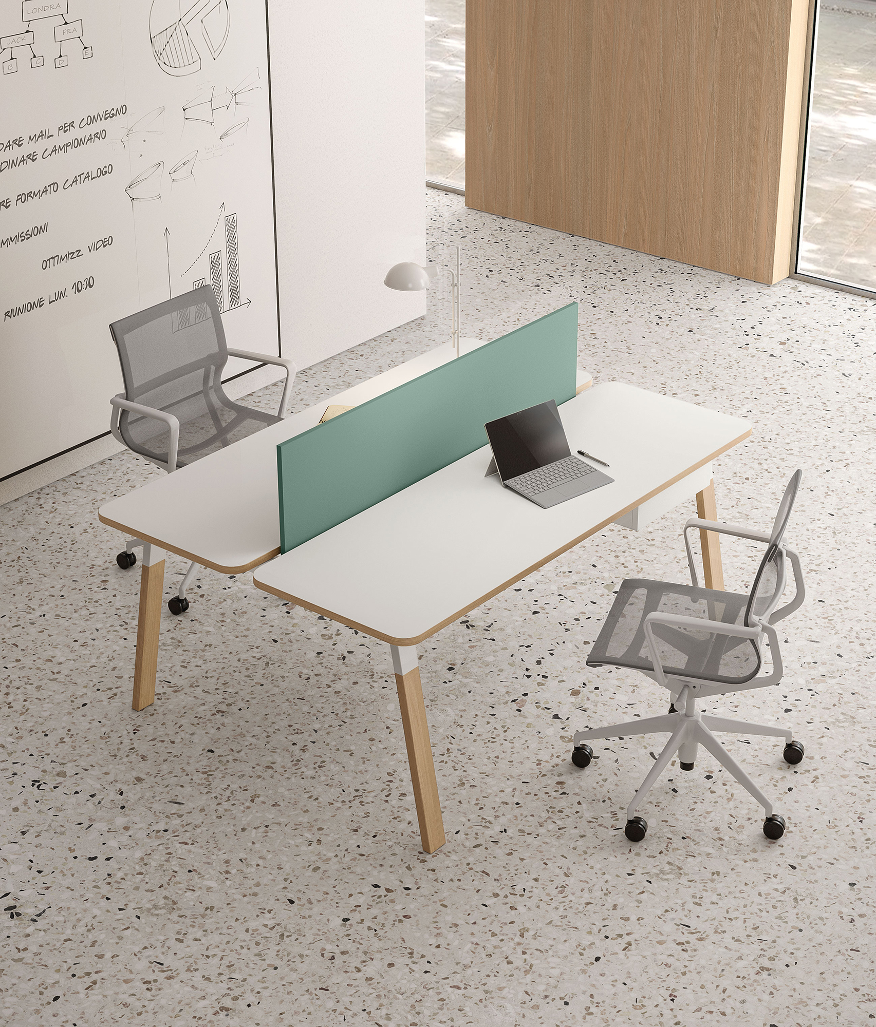 The Soft Series is an innovative office furniture system designed to create collaborative workspaces that boost efficiency and inspire creativity. Its centerpiece is the signature Soft desk, a sophisticated and modern workstation available in six distinct structures and fully customizable to match your office’s style.